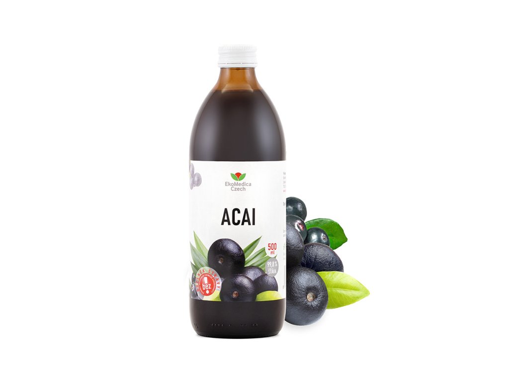 EkoMedica ACAI 99,8% šťáva je získávána z plodů jihoamerické palmy acai nejmodernějším způsobem výroby. Produkt je stabilizován pouze pasterizací, neobsahuje chemické konzervanty. Produkt je proto určen co nejširšímu spektru konzumentů.