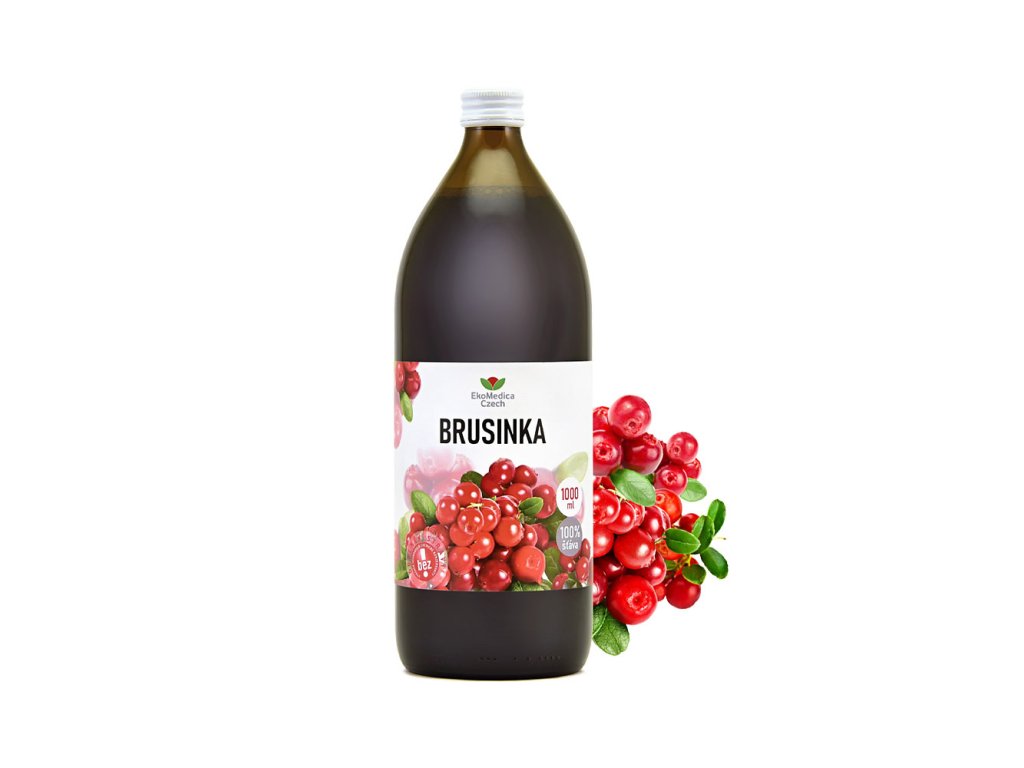 EkoMedica BRUSINKA 100% šťáva je získávána z plodů brusinky nejmodernějším způsobem výroby. Produkt je stabilizován pouze pasterizací, neobsahuje chemické konzervanty. Šťáva je proto určena co nejširšímu spektru konzumentů.