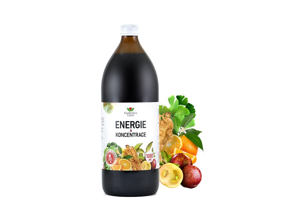 ENERGIE A KONCENTRACE je tekutý doplněk stravy obsahující komplex vitamínů B, taurinu, L-tyrosinu a cholinu s přídavkem extraktu z jinanu, ženšenu, camu camu a pomerančové šťávy. Riboflavin, niacin, vitamín B6, vitamín B12, kyselina pantothenová, biotin a vitamín C přispívají k udržování normálního energetického metabolismu a pomáhají snižovat pocit únavy a vyčerpání. Jinan a ženšen podporují kognitivní funkce, paměť a duševní výkonnost.