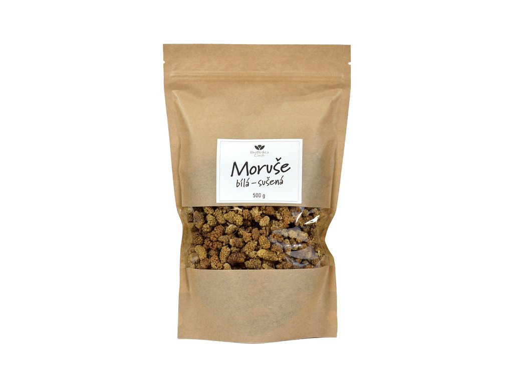 Sušené plody bílé moruše svým tvarem připomínají plody ostružiny nebo maliny. Nasbírané přímo ze stromu mají perleťovou barvu, po usušení má odstíny béžové a světlé karamelové. Pochází z jihovýchodní Asie, ale dnes se pěstuje na všech kontinentech.