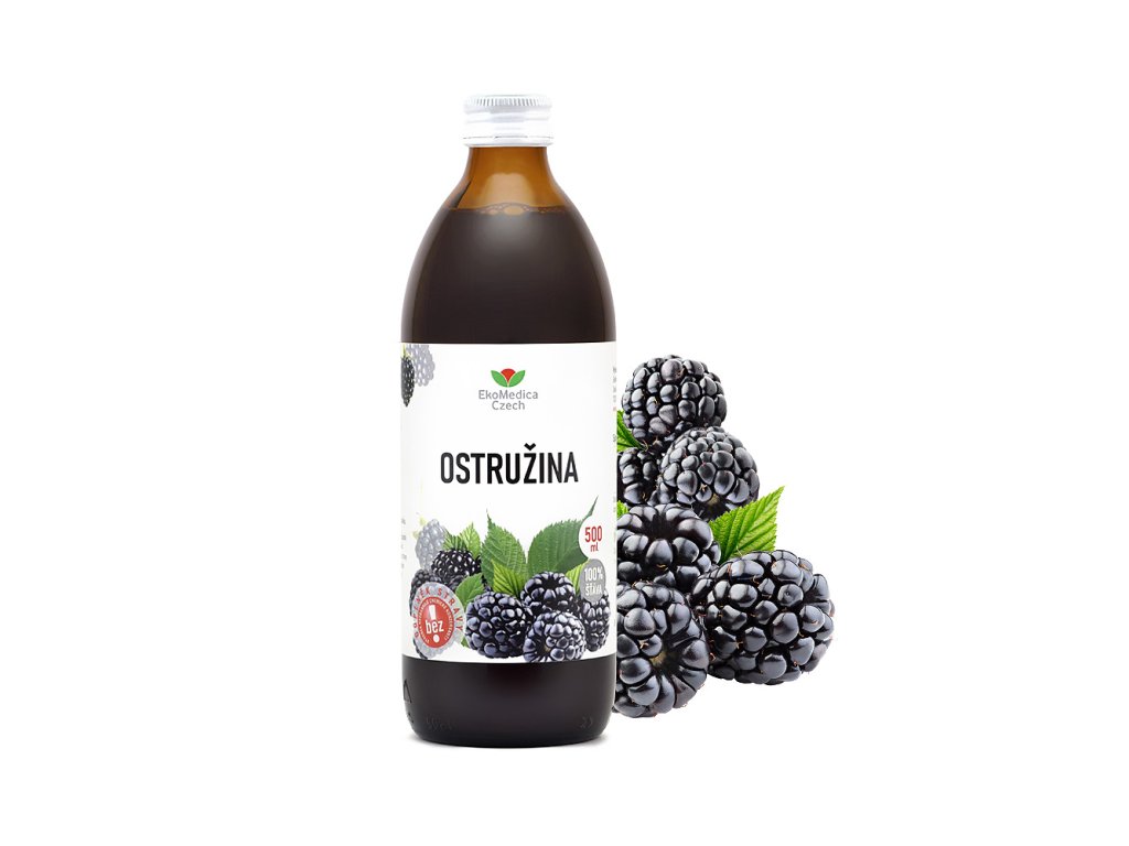 EkoMedica OSTRUŽINA 100% šťáva je získávána z plodů ostružin nejmodernějším způsobem výroby. Produkt je stabilizován pouze pasterizací, neobsahuje chemické konzervanty. Šťáva je proto určena co nejširšímu spektru konzumentů.