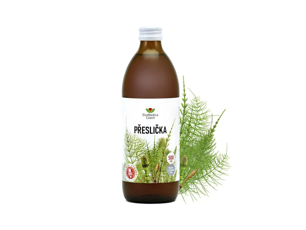 EkoMedica PŘESLIČKA ROLNÍ výtažek je získáván z natě přesličky rolní nejmodernějším způsobem výroby. Produkt je stabilizován pouze pasterizací, neobsahuje chemické konzervanty. Produkt je proto určen co nejširšímu spektru konzumentů.