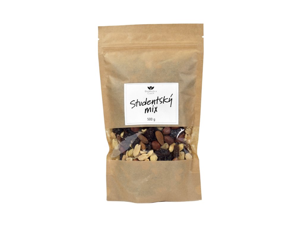 Tajemstvím dokonalé svačiny je správné složení ingrediencí, které zaručí chuť a bohatost vitamínů a minerálů. Studentský mix je kombinací křupavých lískových oříšků, kešu, mandlí a arašídů se šťavnatými, sladkými rozinkami.