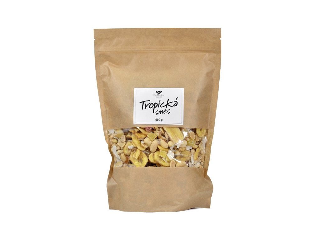 Tajemstvím dokonalé svačiny je správné složení ingrediencí, které zaručí chuť a bohatost vitamínů a minerálů. Tropická směs je kombinací arašídů, kandovaného ananasu, kandované papáji, kokosových chipsů, banánových chipsů, mandlí a kešu.